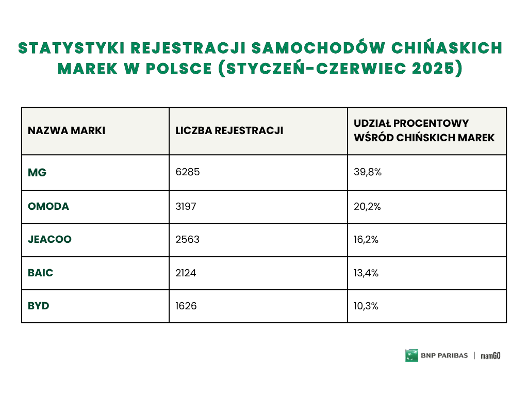 Spójrzmy dokładniej, co mówią statystyki względem rejestracji chińskich marek w Polsce w okresie styczeń-czerwiec 2025: