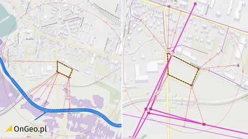 • Odległość działki od napowietrznej linii energetycznej i urządzeń infrastruktury technicznej;