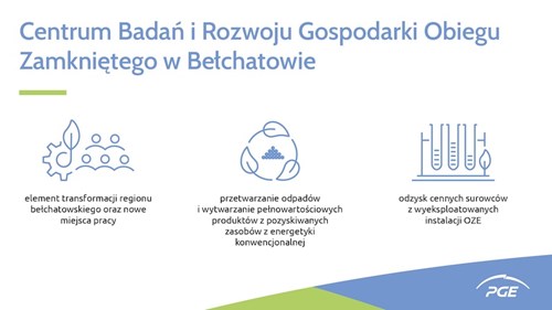 „Centrum GOZ to kolejny realizowany przez nas element transformacji regionu bełchatowskiego. W zeszłym roku otworzyliśmy Centrum Rozwoju Kompetencji, które jest wsparciem dla pracowników sektora węglowego w nabyciu nowych kompetencji. Dzięki powstałemu Centrum GOZ stworzymy nowe miejsca pracy i kolejne możliwości rozwoju dla naszych pracowników. Jestem przekonany, że unikalny na skalę krajową ośrodek, przyciągnie do Bełchatowa wielu specjalistów, i odegra istotną rolę w jego rozwoju - mówi Wojciech Dąbrowski, prezes zarządu PGE Polskiej Grupy Energetycznej. – Rola Gospodarki Obiegu Zamkniętego stale rośnie. W Grupie PGE powołaliśmy specjalny segment realizujący zadania z zakresu zamykania obiegu surowców a Centrum GOZ wpisuje się w założenia naszej strategii osiągnięcia neutralności klimatycznej do 2050 roku” – dodaje Wojciech Dąbrowski.