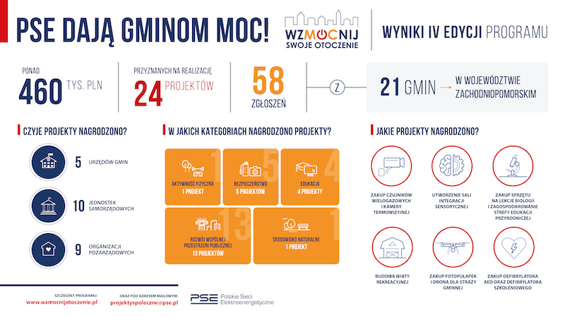 „Cieszymy się, że na Pomorzu Zachodnim jest tak wielu ludzi, którzy chcą zmieniać swoją okolicę. Dzięki temu powstały wyjątkowe projekty, które posłużą mieszkańcom na długie lata” – mówi Jan Koprowski z Wydziału Komunikacji Społecznej PSE.