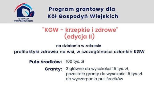 Organizatorzy serdecznie zachęcają wszystkich Państwa do zaangażowania się w program grantowy „KGW - krzepkie i zdrowe” (edycja II).