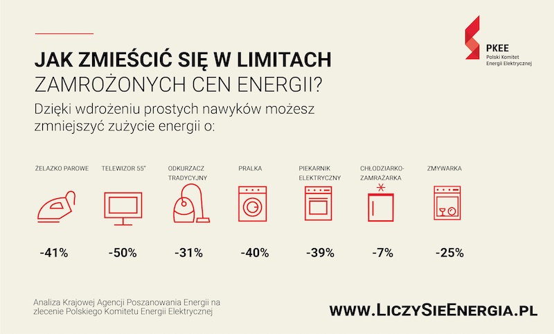 „Kolejna już analiza energochłonności najpopularniejszych urządzeń AGD przygotowana dla Polskiego Komitetu Energii Elektrycznej uświadamia, jak wiele w kwestii wysokości rachunku za prąd zależy od nas samych. To wiedza cenna szczególnie teraz, w kontekście wprowadzania limitów cen energii, ale przede wszystkim w kontekście kształtowania nawyków, które wprost przekładają się na długotrwałe zmniejszenie ilości zużywanego prądu, a w efekcie oczywiście wysokości naszego rachunku. Najtańsza energia to ta niezużyta - warto więc korzystać z informacji i porad udostępnianych na stronie www.liczysieenergia.pl, aby nowy rok nie przyniósł nieprzyjemnych niespodzianek, szczególnie dla naszegoportfela” - mówi Włodzimierz Cupryszak, ekspert ds. regulacji Polskiego Komitetu Energii Elektrycznej.
