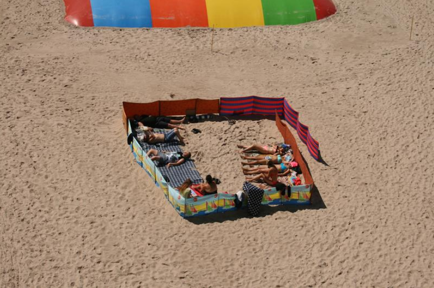 Parawan jest niezastąpiony, kiedy słońce świeci, ale wieje zimny wiatr. Tak też było w przypadku widocznych na zdjęciu plażowiczów. A pomyśleć, że dwa lata temu adwokat z Łodzi postanowił zakazać rozkładania parawanów na plaży. Pomysł podchwycił w zeszłym roku burmistrz Darłowa Arkadiusz Klimowicz, który zapowiadał, że na jego plażach parawanów nie można będzie stawiać. Tyle tylko że był to chwyt marketingowy, bo przecież egzekwowanie tego zakazu byłoby trudne do wykonania. ©℗
