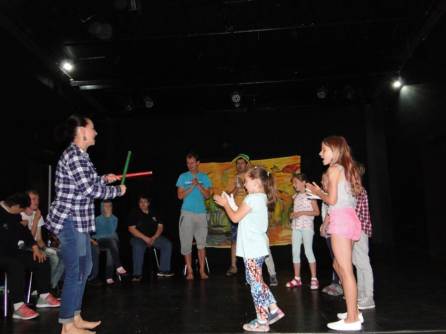 W czasie wakacji w Gryfińskim Domu Kultury od lat jest gwarno i wesoło, bowiem pracownie artystyczne otwierają swoje podwoje dla chętnych. Warsztaty odbywają się w obu miejskich siedzibach domu kultury oraz w świetlicach wiejskich, filiach GDK. Bywa, że zajęcia przybierają formę spontanicznych spotkań kilku grup. Tak było wczoraj (12 bm.) kiedy na scenie spotkali się aktorzy miejscowego Teatru Bomba Bomba z uczestnikami warsztatów recytatorskich. Wszyscy znakomicie się bawili podczas wspólnych działań twórczych. Było gwarno i wesoło. Nie od dziś wiadomo bowiem, że sztuka wyzwala pozytywne emocje. Taka zabawa była też świetną lekcją wrażliwości i współdziałania w grupie.