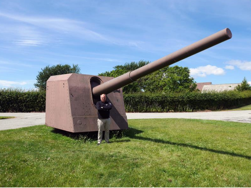 Na zdjęciu: Znalazło się! Działo kalibru 15 cm o numerze 1094, które - wedle dokumentów - kiedyś broniło świnoujskiego nabrzeża przed desantem wroga znajduje się obecnie w duńskim Landelandsfort. Przy dziale – Piotr Piwowarczyk