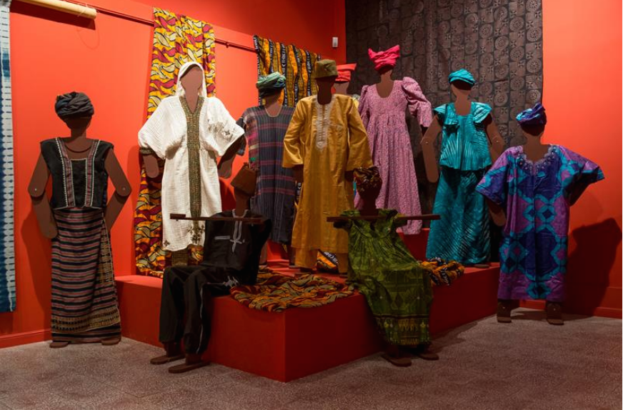Na zdjęciu: Obok tkanin można zobaczyć także gotowe stroje – zarówno codzienne, jak i odświętne wybranych ludów afrykańskich np.: Hausa, Fulbe, Aszanti, Bambara, Herero, Amhara – wabiące kolorami i wzorami.