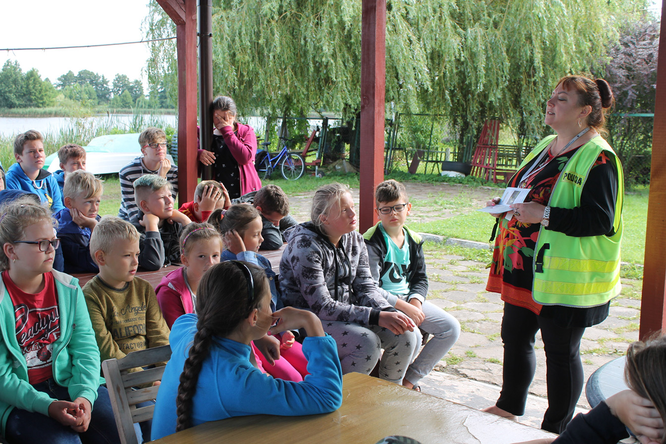 Mimo że wakacje chylą się końcowi policjanci wciąż prowadzą działania profilaktyczne. Mundurowi z Pyrzyc spotkali się z dziećmi spędzającymi czas na półkoloniach nad jeziorem Wądół w Lipianach.