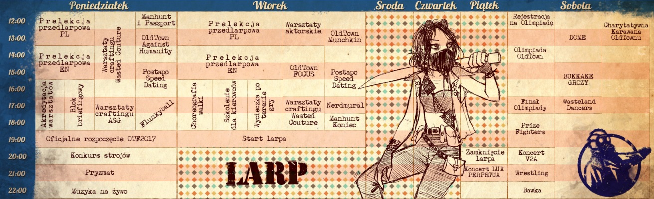 Poza larpem na gości OldTown czekają także konkursy, prelekcje, warsztaty teatralne, wielka sesja fotograficzna, galeria postapokaliptycznej sztuki, walki bokserskie, nocne imprezy muzyczne i wiele innych atrakcji. Oprócz Polaków, organizatorzy spodziewają się ekip z Niemiec, Finlandii, Czech, a nawet z Izraela.