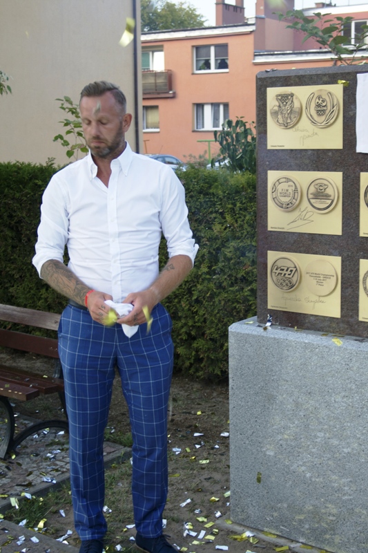 Oprócz niego repliki swoich medali odsłonili: Agnieszka Skrzypulec - mistrzyni świata w żeglarstwie, Oktawia Maria Nowacka - brązowa medalistka olimpijską w 2016 r. w pięcioboju nowoczesnym i Grzegorz Tkaczyk, który 11 lat temu wywalczył wicemistrzostwo świata w piłce ręcznej. Swój medal osłonił także Bartosz Zmarzlik - drugi wicemistrz indywidualnych mistrzostw świata oraz drużynowy mistrz świata w żużlu.