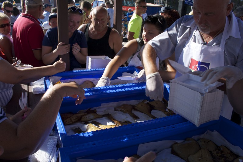 Burmistrz Trzebiatowa Józef Domański wystrzałem z pirackiej armaty rozpoczął w sobotę 4 sierpnia tradycyjny festyn rybny w porcie w Mrzeżynie. Potem zaprosił wczasowiczów i mieszkańców na zupę rybną (osobiście ją nalewał) i wędzone flądry, których tutejsi rybacy przygotowali dwa tysiące porcji. Na scenie występowały zespoły szantowe, była także inscenizacja oblężenia Kołobrzegu w wykonaniu grupy „Nałęcz”.