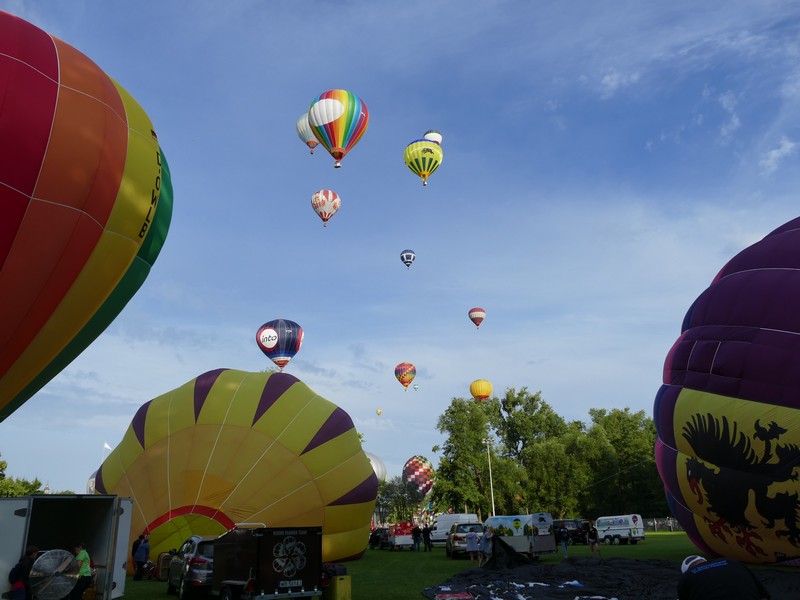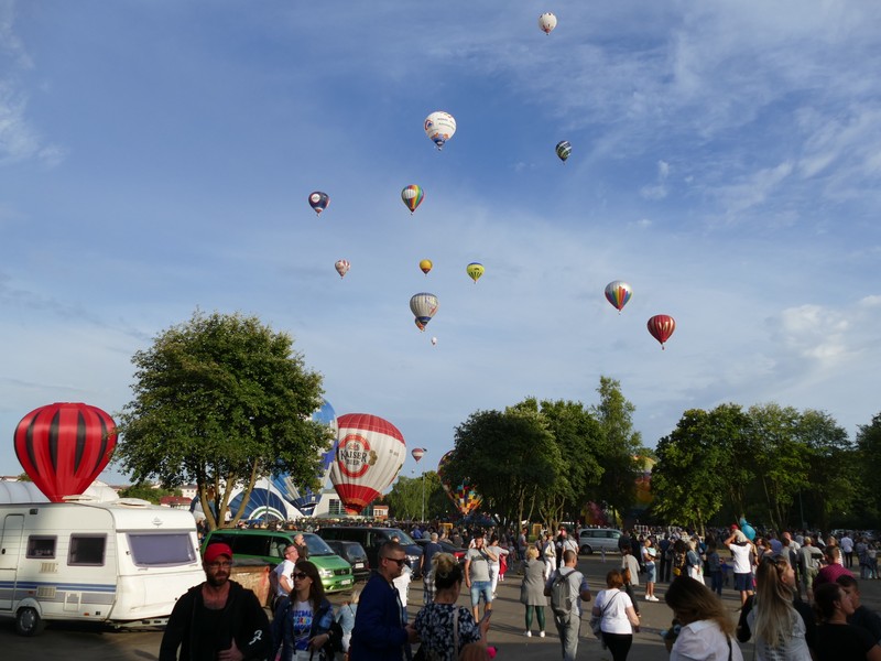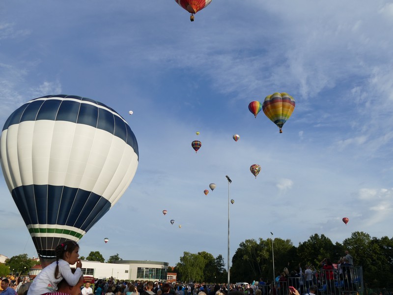 Pierwszego dnia Festiwalu pogoda nie sprzyjała pilotom. Silny wiatr uniemożliwił starty balonów o nietypowych kształtach. Wystartowało ich zaledwie kilkanaście. Start ten potraktowano treningowo. W sobotę wieczorem w niebo wzbiło się już ponad 40 statków powietrznych. W powietrzu zrobiło się tłoczno i… kolorowo. Balony poleciały nie nad miasto, ale na jego południowo-wschodnie przedmieścia. Starty obserwowało kilka tysięcy widzów. Wielu z nich przyjechało z rożnych stron kraju specjalnie na ten festiwal.