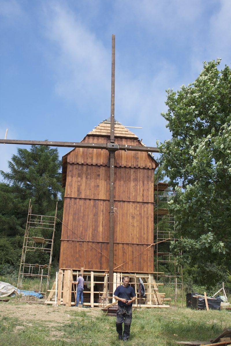 Wiatrak był doskonale zachowany, gdyż przez wiele lat pozostawał w prywatnych rękach. Po rozbiórce okazało się jednak, że wiele jego elementów wymaga wymiany, gdyż drewno nie wytrzymałoby ponownego zamontowania. Jak nam powiedział Tomasz Bogdaniec z Gryfic, z wykształcenia architekt, a dziś stolarz i cieśla, do wykorzystania nadawało się około 15 procent drewnianej konstrukcji. Resztę dorabiano. Najważniejsza część wiatraka, czyli koła zębate, wał, przeniesienie napędu, żarna oraz łopatki są oryginałami i zostały ponownie zamontowane. Nowe są skrzydła wiatraka, do których przymocowane będę drewniane listwy zwiększające ich powierzchnię.