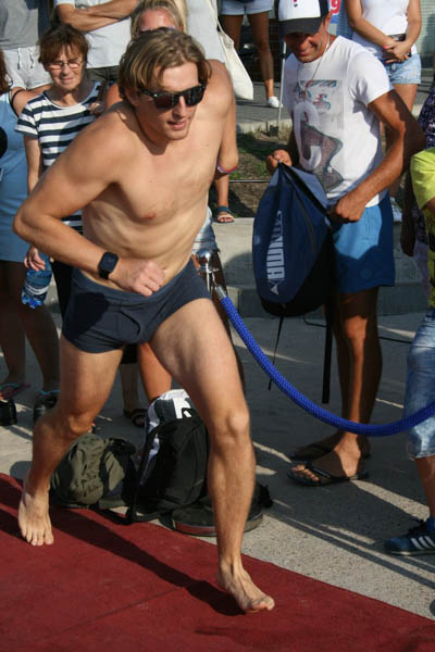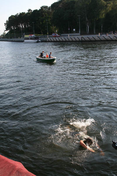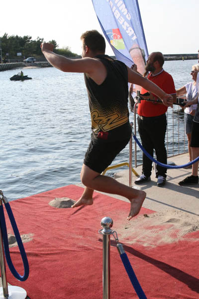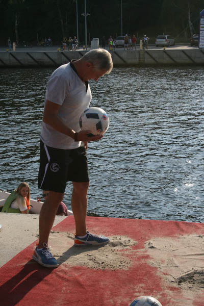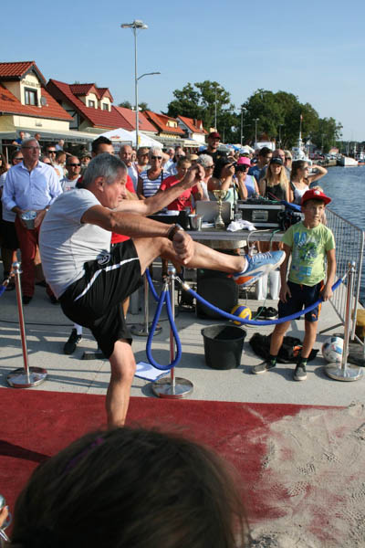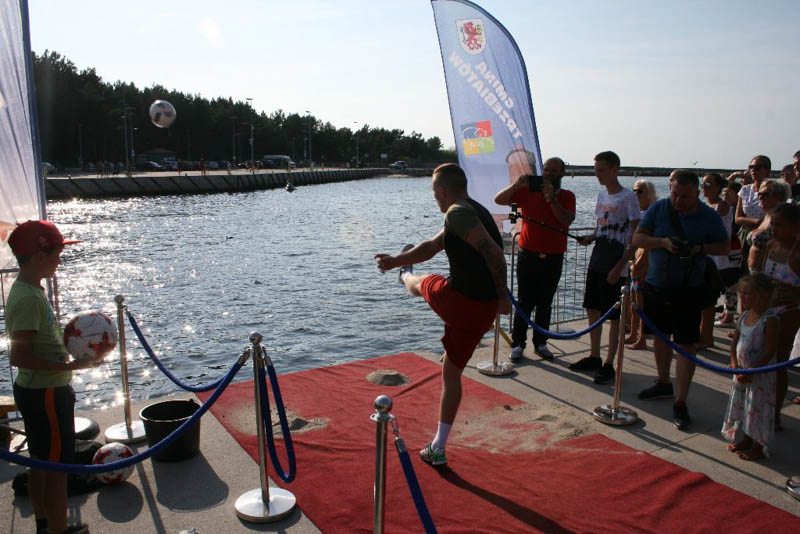 Zawodnicy mieli różne techniki strzału (w butach, na bosaka, w skarpetkach, z usypanej kupki piasku), ale żadnemu z nich nie udało się przekopać kanału, nie mówiąc już o trafieniu do potężnej bramki, jaka stała na drugim brzegu. Dwóch zawodników tak się rozpędziło, że wpadli do rzeki, ale przy asekuracji ratowników (wyławiali także piłki) dopłynęli do brzegu. Najbliżej brzegu był Mateusz Przygoda (Trzebiatów), który pokonał Adriana Hartle (Koszalin) i Mariusza Mieszczyszyna (Mrzeżyno). Najlepsi otrzymali upominki z rąk burmistrza Domańskiego.