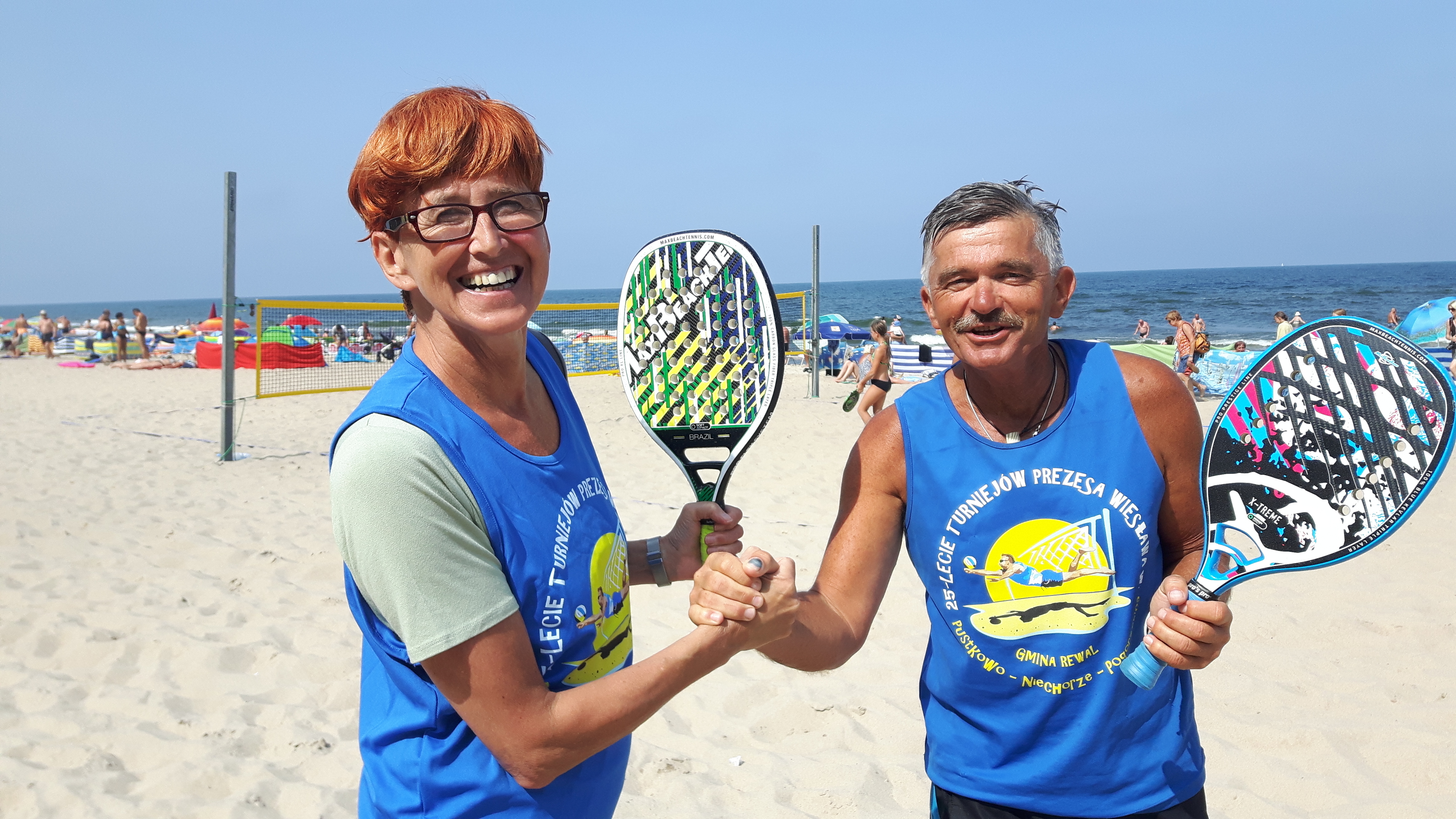 Do plażowej tenisowej zabawy w Pustkowie, którą od kilku lat promuje w gminie Rewal Wiesław Wiatrowski, przyłączyła się… minister Elżbieta Rafalska, która wraz z rodziną przebywała na 10-dniowym urlopie w tej malowniczej i spokojnej miejscowości. Podczas swojego pobytu czynnie wspierała nową dyscyplinę, która zdobywa sobie coraz większą popularność. Uczestniczyła wraz z rodziną aktywnie w siatkarskich i tenisowych bojach. Tuż przed wyjazdem do stolicy organizator plażowych rozgrywek W. Wiatrowski wręczył pani minister w dowód uznania za zaangażowanie pamiątkową koszulkę związaną z 25-leciem turniejów siatkówki plażowej, które wspólnie z gminą Rewal popularny „prezes” Wiesiu realizuje. Pani minister zapewniła, że wróci tu za rok. Trzymamy za słowo.