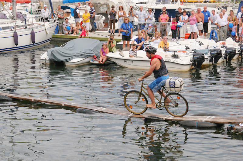 Organizatorzy tradycyjnych kołobrzeskich zawodów w jeździe rowerem po desce unoszącej się na wodzie poszukują śmiałków, którzy staną na starcie tegorocznej edycji zabawy.