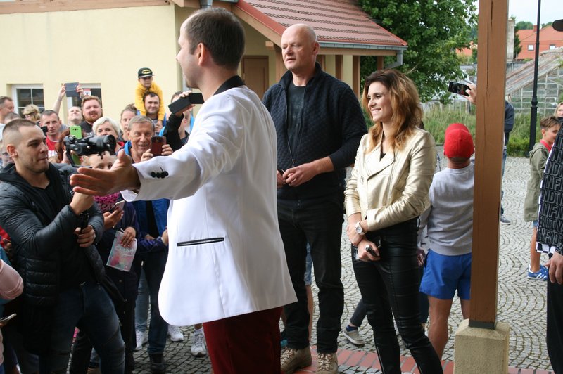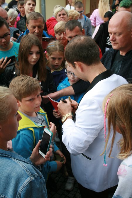 Po przyjeździe na dworzec w Rewalu na artystę czekały tłumy wielbicieli. Były oczywiście wspólne zdjęcia i autografy. Potem Sławomir odjechał czarnym mercedesem z zaciemnionymi szybami.