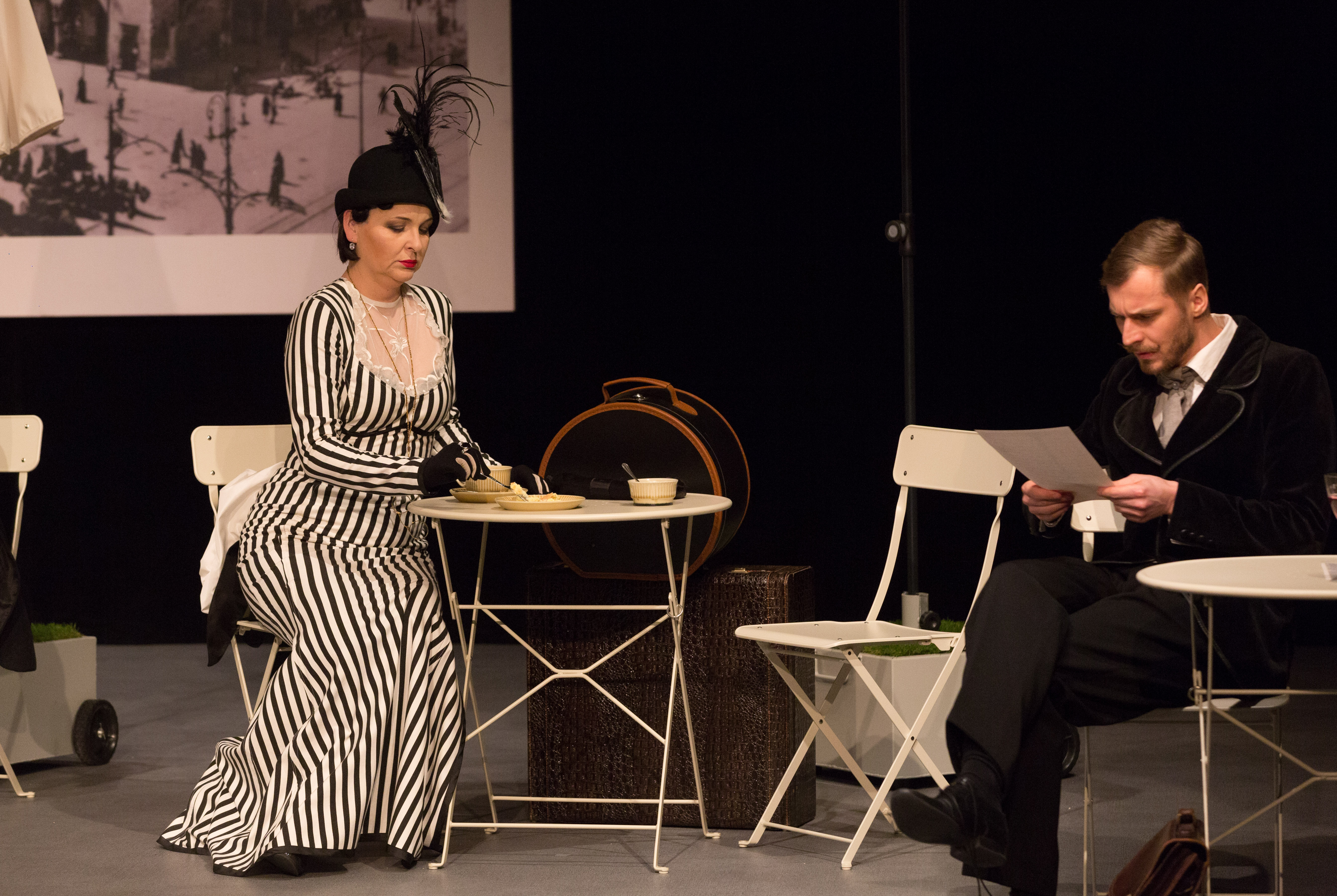 Na zdjęciu: Olga Adamska i Piotr Bumaj w spektaklu „Pensjonat Pana Bielańskiego”.