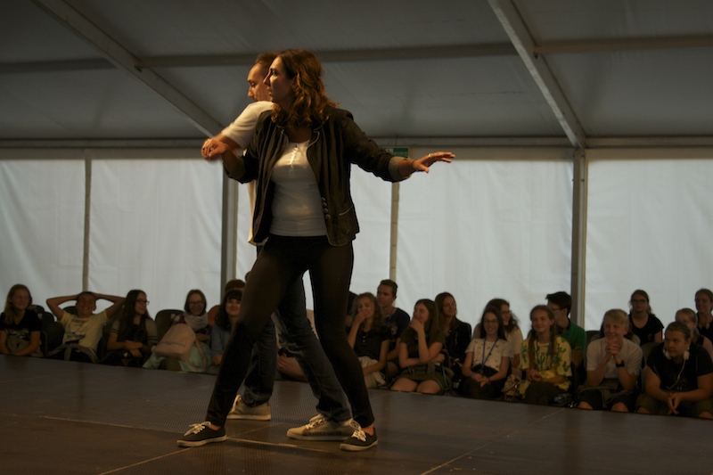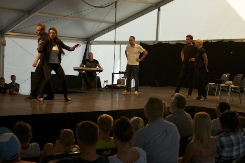 – Ten spektakl będzie jedynym i więcej takiego już nie zagramy. Codziennie jest inny – powitał widzów zgromadzonych przed sceną jeden z aktorów. Tak jest codziennie o godz. 20.15 w Teatrze IMPRO, który występuje na scenie wioski artystycznej w Janowie, niedaleko Rewala.