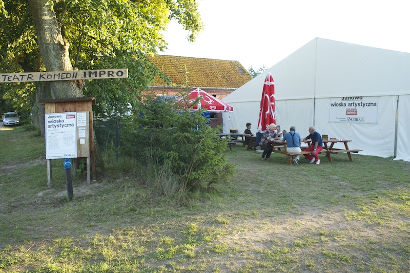 Występy w Janowie odbywają się w potężnym namiocie, w którym jest ustawiona scena na podwyższeniu, więc każdy widz widzi wszystko. Wokół jest ustawionych 299 krzeseł (jedno więcej oznacza konieczność wynajęcia ochrony), a rekord to 188 widzów na jednym ze spektakli. Teatr nabył na własność jeden z porzuconych domków, w którym mieszka część aktorów. Budynek będzie rozbudowany, a do tego czasu inni mieszkają w namiotach. Janowo staje się powoli miasteczkiem artystów, niebawem wystąpi tu m.in. znakomity polski jazzman Michał Urbaniak.