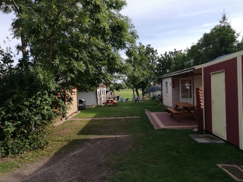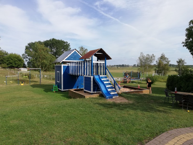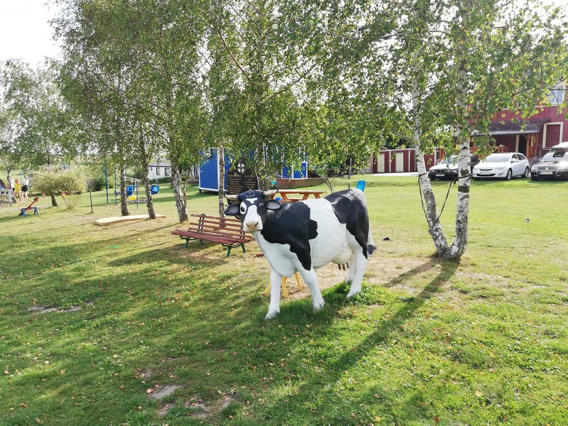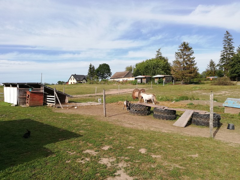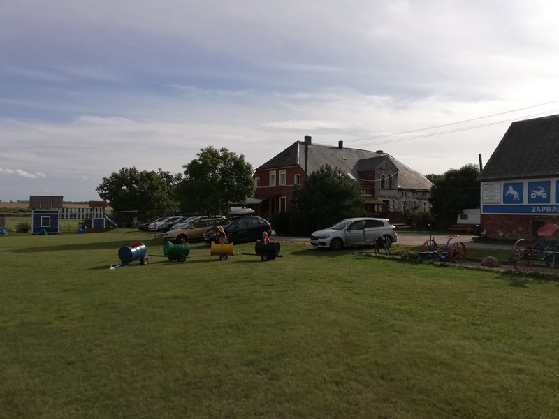 Na miejscu są oczywiście miejsca do spania zarówno w domkach campingowych jak i budynku murowanym. Wszystkie są wyposażone w miejsca do przygotowywania posiłków, a codziennie rano jest tu dostawa świeżego pieczywa. Ceny raczej nie odstraszają, gdyż gości jest wielu, a większość bukuje noclegi już w kwietniu. Na miejscu goście mają wiele dodatkowych rozrywek, jak chociażby wspólne ogniska, wyjazdy przez pola na przyczepie traktorowej na zachód słońca nad jeziorem, przejażdżki w wagonikach wykonanych ze starych beczek ciągnionych przez quady i wiele innych atrakcji. Na miejscu jest także wypożyczalnia rowerów, quadów i terenowego łazika radzieckiej produkcji. Do morza jest stąd tylko 5 km, ale atutem tego miejsca jest cisza, spokój i możliwość poznania przez dzieci zwierząt, jakich w mieście nie zobaczą.