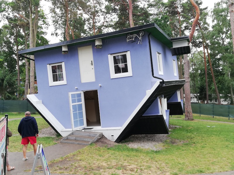 Budynek stojący na dachu to jeden z dwóch takich obiektów na naszym Wybrzeżu. Zwiedzanie dostarcza wielu emocji. Jest to dom, w którym – takie odnosi się wrażenie – grawitacja nie istnieje, stół stoi na suficie i nie spada, a my chodzimy po stropie jakby głową w dół, choć w rzeczywistości normalnie. Wszystko jest odwrócone o 180 stopni.