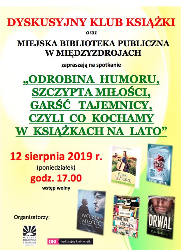 Dyskusyjny Klub Książki oraz Miejska Biblioteka Publiczna w Międzyzdrojach zapraszają na spotkanie pt. „Odrobina humoru, szczypta miłości, garść tajemnicy, czyli co kochamy w książkach na lato”, które odbędzie się dziś (12 sierpnia) o g. 17. Bibliotekarze zaprezentują książki cieszące się popularnością wśród czytelników, m.in.: „Drwal” K.E. Haner, „Pamiętnik księgarza” S. Bythell, „Sekretna kolacja” R. Montes, „Winne Wzgórze. Wiara” D. Schrammek.