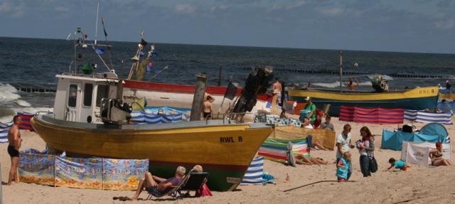 Na zdjęciu: Plażowicze w Rewalu chętnie wypoczywają w cieniu kutra. Ci, którzy chcieliby inaczej spędzić czas, także na nudę nie powinni narzekać.