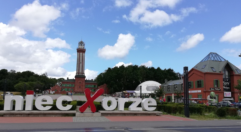 Na zdjęciu: Niechorze to nie tylko latarnia morska, ale także motylarnia (biały namiot) i muzeum figur woskowych (po prawej)