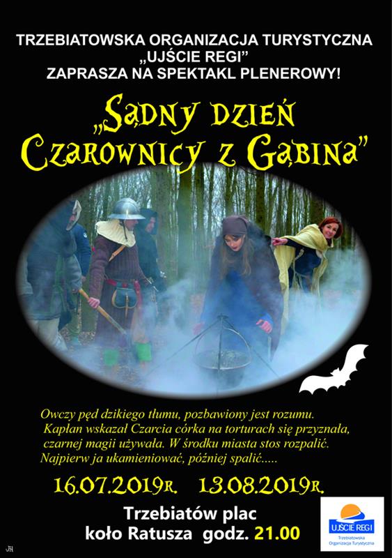 Trzebiatowska Organizacja Turystyczna „Ujście Regi” zaprasza wszystkich turystów i mieszkańców na spektakl plenerowy „Sądny Dzień Czarownicy z Gąbina" .