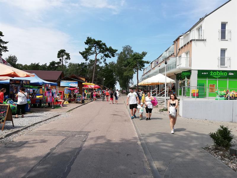 Na skraju wsi, tuż koło ronda powstał kilka lat temu „Polo Market”, który na brak klientów nie narzeka, gdyż łatwo przed nim zaparkować i tanio dokonać zakupów, co nie zawsze jest możliwe w centrum miejscowości. Tam bowiem są ceny często nastawione na łupienie letników, ale wszak sezon trwa dwa miesiące i każdy chce zarobić.