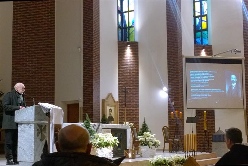 Vor dem Altar brannten die Kerzen auf der Menora und alle Namen der Deportierten – Kinder, Alte, ganze Familien – erschienen, unterlegt mit gedämpfter synagogaler Musik, auf einer Leinwand. Andrzej Kotula begann mit der Vortragung der Namen dieser zum Tode Verdammten. Der freie Journalist aus Stettin und Mitbegründer des vor über 20 Jahren gegründeten Polnisch-Deutschen Journalistenklubs „Unter Stereotypen” bemüht sich seit Jahren um die Dokumentation des Schicksals pommerscher Juden.